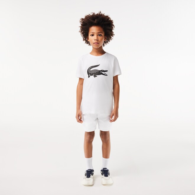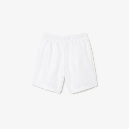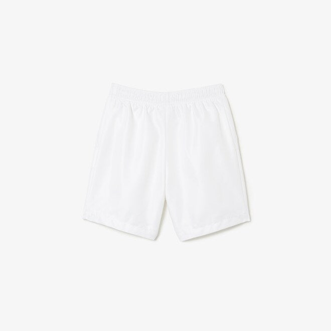 Functional, ergonomic, and extremely lightweight, these comfortable high-performance shorts for kids feature an elasticized waistband, an embroidered crocodile on the front, and are made from recycled diamond taffeta.