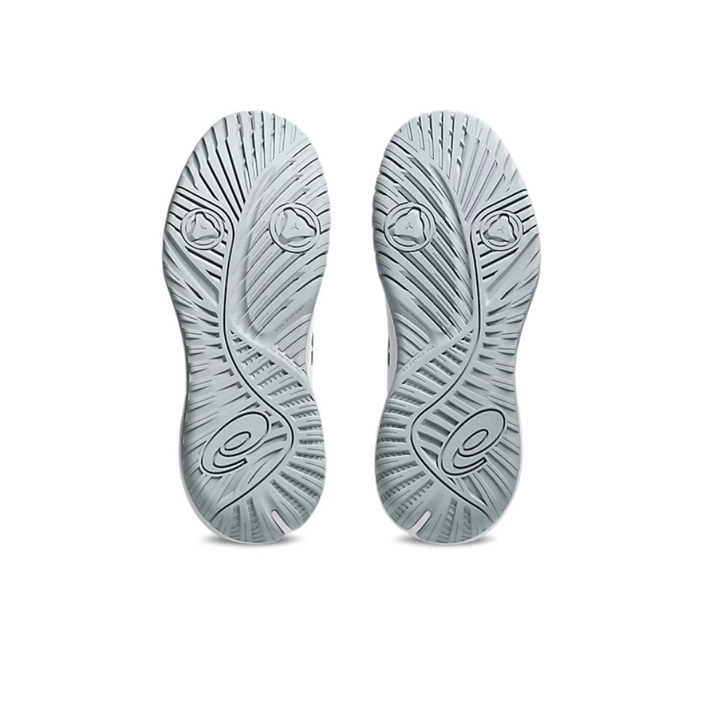 Featuring an all new Wingwall structure on the lateral edge of these shoes, the feeling is sturdy and secure when going side to side. The top material provides support and incorporates ventilation holes, while the iconic GEL cushioning beneath the heels improves comfort. For optimal grip and durability on a range of court surfaces, the AHARPLUS rubber outsole is shaped into a modified herringbone pattern.