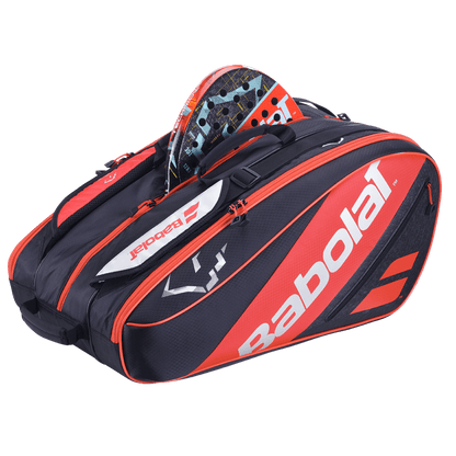 Esta bolsa padel contém uma enorme área central para suas roupas, bolas e outros suprimentos, além de dois compartimentos laterais, um dos quais é isolado e pode armazenar duas raquetes cada.