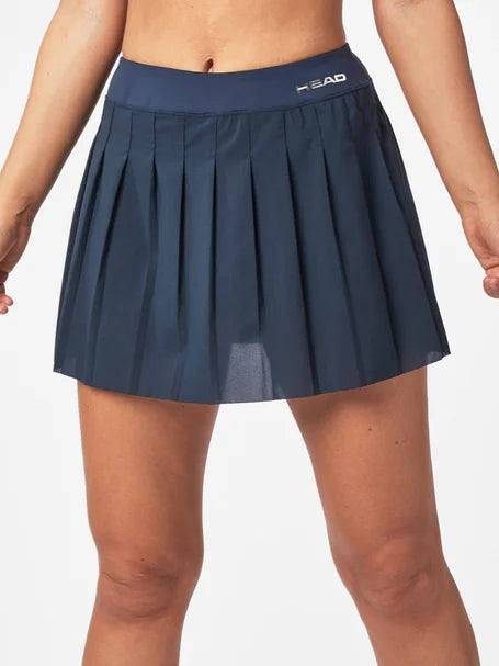 A saia Performance HEAD é leve e respirável, e tem uma aparência tão boa quanto seu desempenho no campo. A cintura elástica, o calção integrado, a bainha cortada a laser, a tecnologia de absorção de humidade de secagem rápida que esfria à medida que seca e o logotipo HEAD na cintura esquerda completam esta saia plissada arejada.