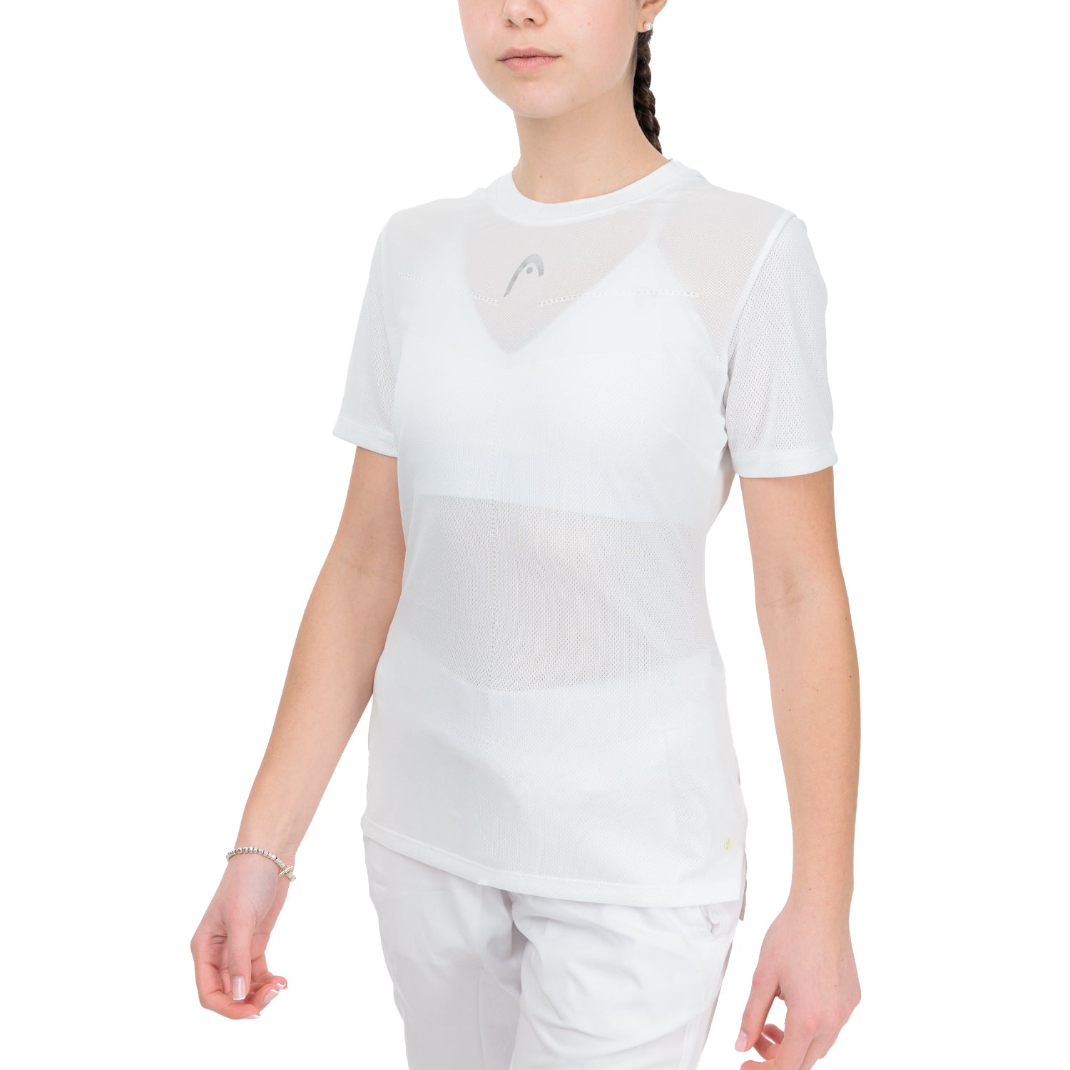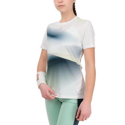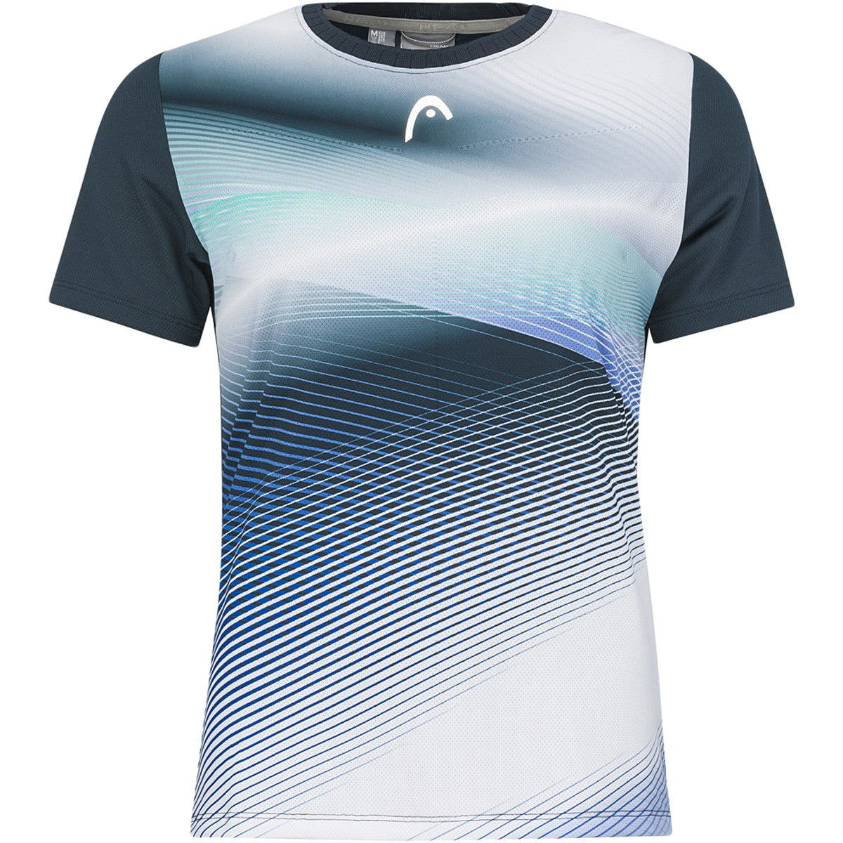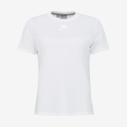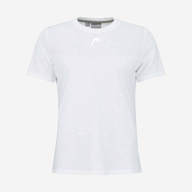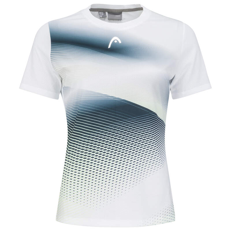 Vista uma camisola feminina com inovações de desempenho de ponta e estilo de qualidade para jogar o seu melhor ténis. T-Shirt com gola redonda de malha jacquard, punho canelado de malha plana na bainha das mangas e fita de pescoço com a marca HEAD manterá você com boa aparência, quer esteja praticando ou jogando. A camisola é confeccionada em tecido elástico de última geração com 16% de elastano e conta com a exclusiva tecnologia Moisture Transfer Microfiber da HEAD. Como resultado, a camisola fica mais fria e seca mais rapidamente. Você pode facilmente fazer a transição da linha de base para a rede e para trás graças às fendas laterais e inserções de malha que aumentam a respirabilidade.