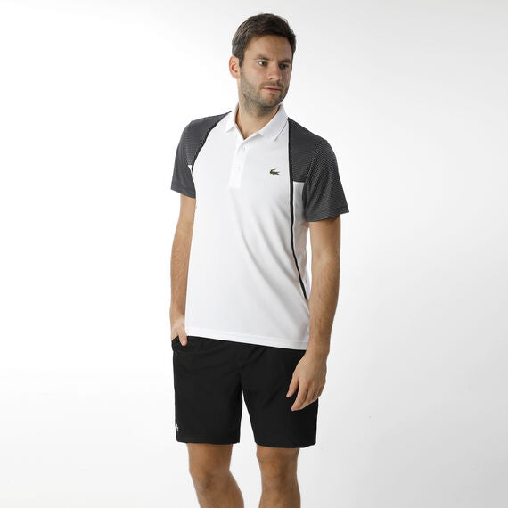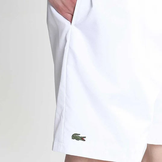 Estes calções de ténis são feitos de um tecido elástico de mistura de algodão e têm um forro muito macio que se adapta perfeitamente à pele. Enquanto isso, o cós elástico canelado oferece um ajuste seguro mesmo durante jogos em ritmo acelerado. O ajuste individual é possível graças ao cordão incorporado, resultando num ajuste excelente. Para obter alguns pontos percentuais extras de desempenho, o material de malha oferece máxima respirabilidade e ventilação. As bolas de tênis podem ser armazenadas em dois bolsos abertos. O terno de ténis é completado pelo característico logotipo do crocodilo na perna direita!