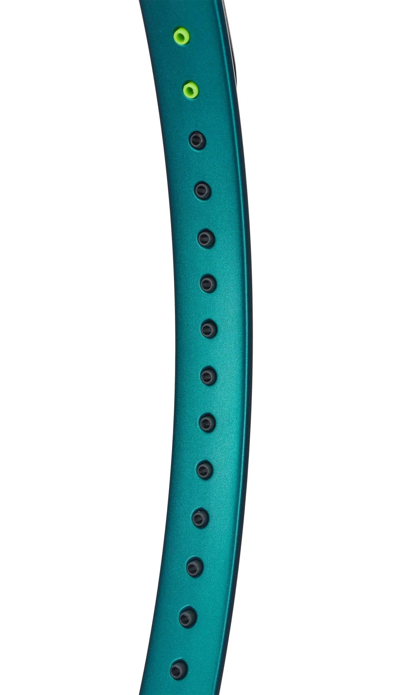 Com um peso de cerca de 300 gramas, a Blade 100L v9 é uma arma de movimento rápido que permite aos jogadores em ascensão aproximarem-se da bola com segurança ou responderem rapidamente quando sob pressão aumentada. Semelhante aos membros anteriores da família Blade, a 100L oferece o tipo de precisão que estimula a confiança durante golpes completos. Semelhante à sua antecessora, esta atualização possui tecnologia Direct Connect, que para maior estabilidade fundiu a tampa diretamente ao cabo de fibra de carbono. Ela também mantém a tecnologia FortyFive de Wilson, que aumenta a flexibilidade lateral para acompanhar a poderosa mecânica vertical do jogo contemporâneo (pense num spin amigável).